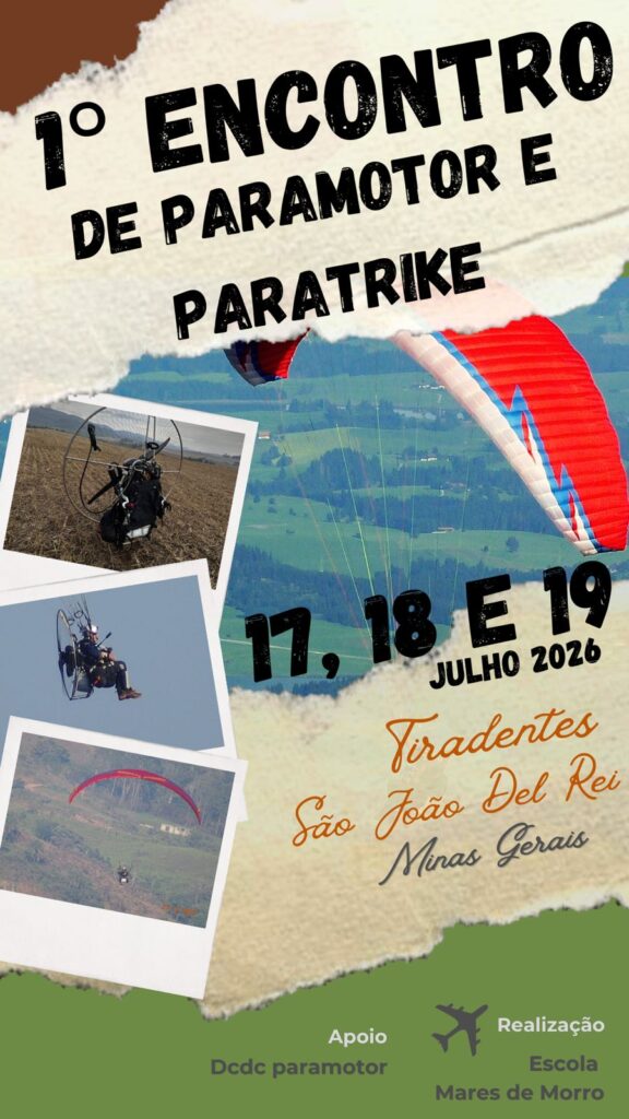 1º Encontro de Paramotor e Paratrike de São João Del Rei – MG Realização: Escola de Paramotor e Paratrike Mares de MorroContato: Leandro Aguiar – (32) 98826-9882